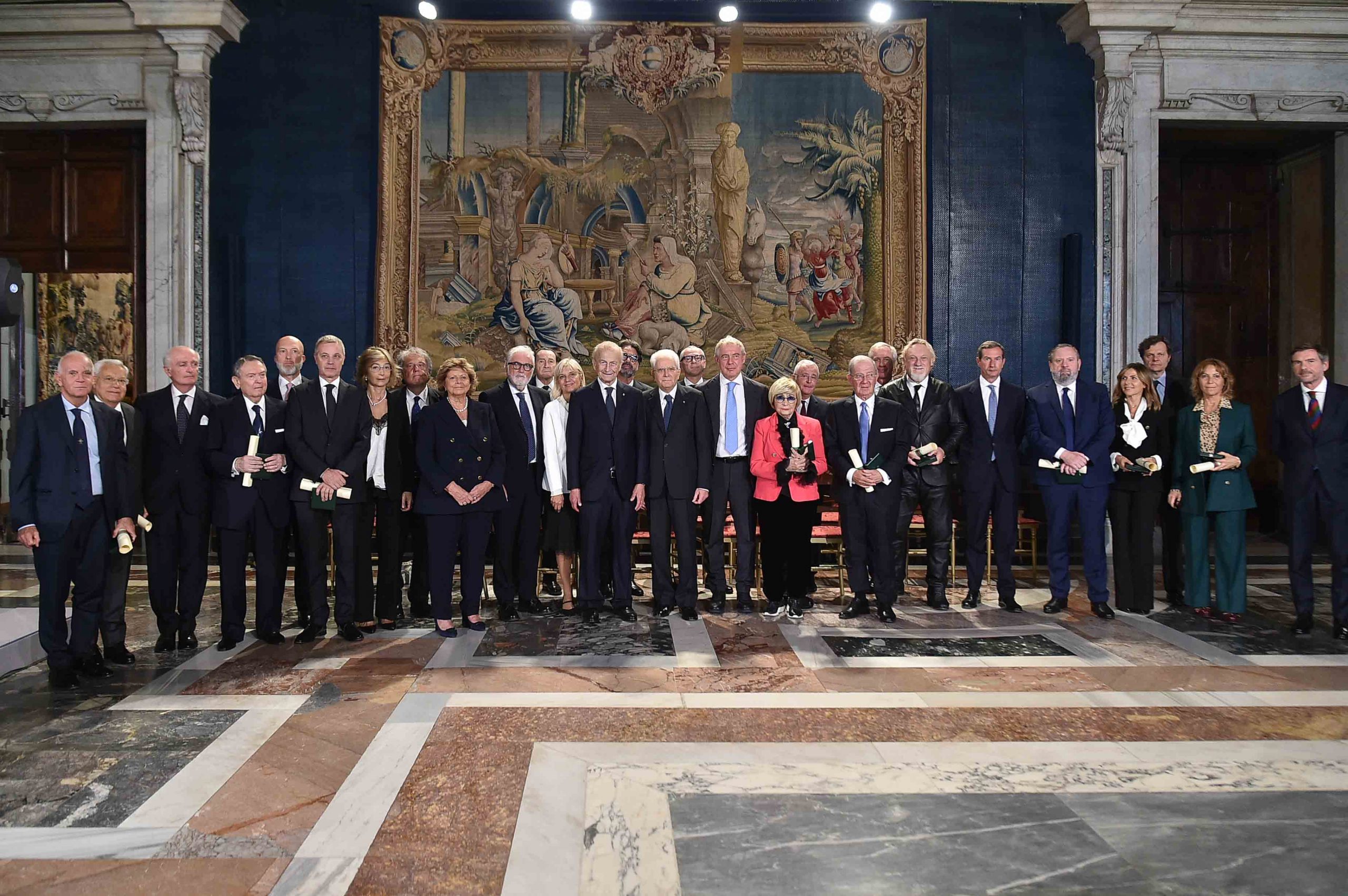 Il Presidente della Repubblica Sergio Mattarella con Cavalieri del Lavoro che appartengono all’Ordine da 25 anni